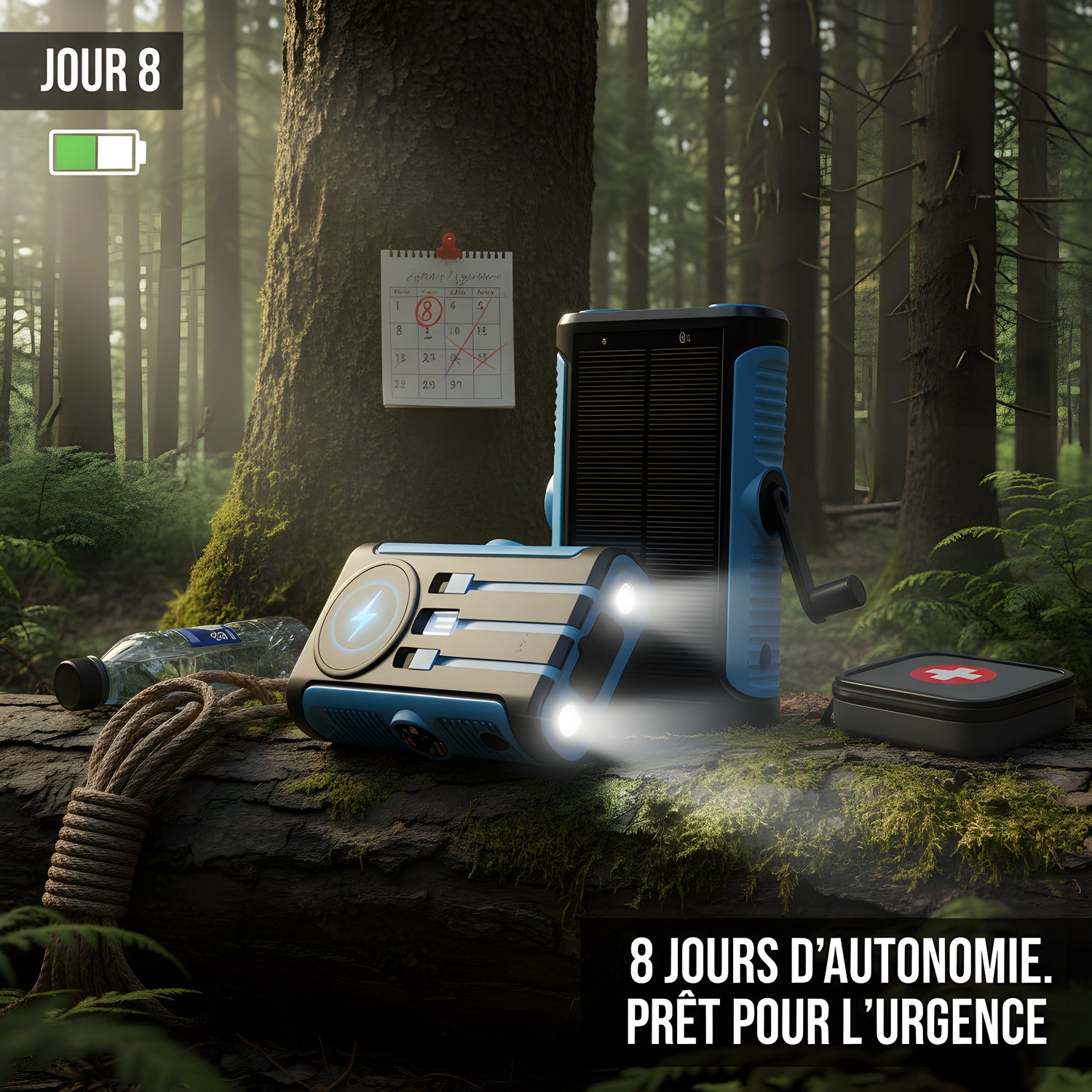 Jusqu'à 8 jours d'autonomie en utilisation d'urgence : appels, lumière, GPS, messages, etc.